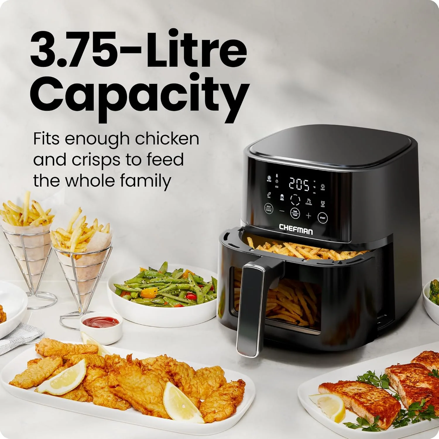 Chefman Air Fryer – 3.75L Compact Airfryer for Quick, Easy Meals, Features Hi-Fry Technology for Extra Crisp, Easy-View Window, Touch Controls with 4 Presets, Nonstick & Dishwasher Safe Basket – Black