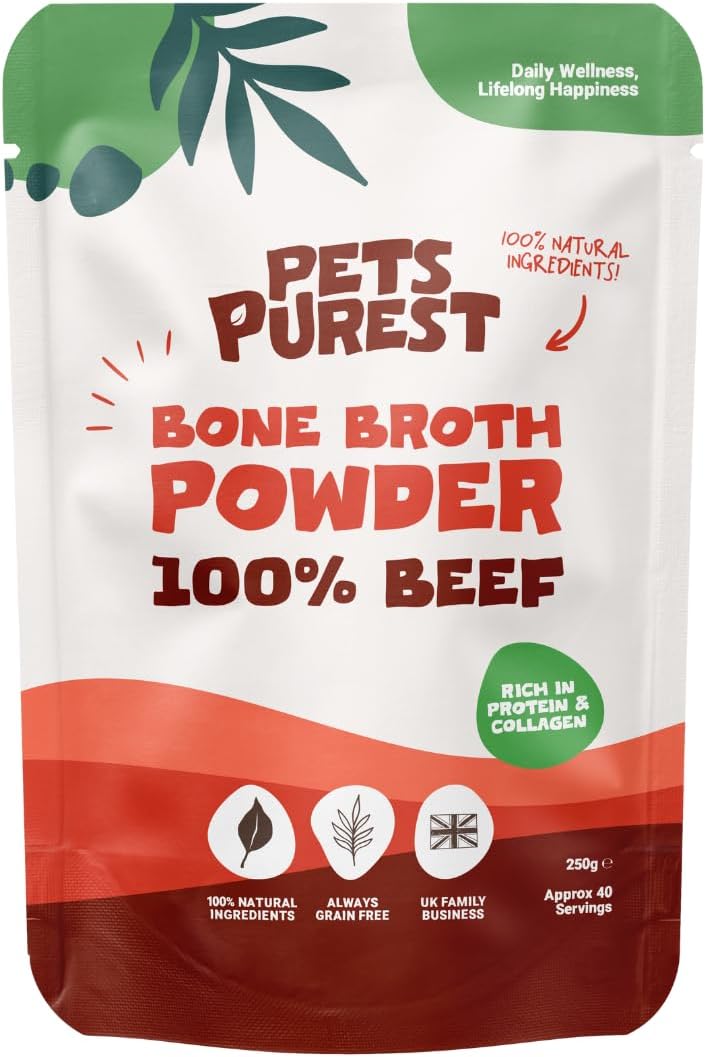 Pets Purest Bone Broth for Dogs & Cats, 250g Beef Bone Broth Powder for Dogs & Cats. Supports Joints, Digestion, Immunity & Healthy Skin and Coat
