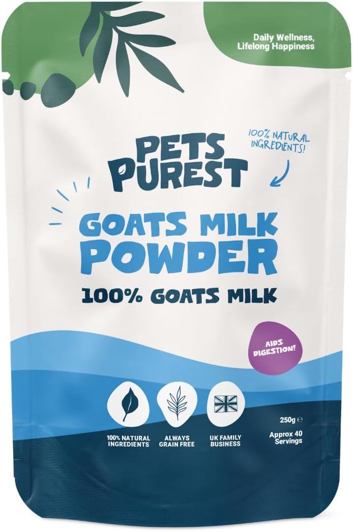 • Whole Goats Milk for Dogs: Pets Purest Goat Milk powder for dogs is suitable for pets of all ages over 8 weeks old. With the closest nutrient profile to canine milk, our powdered goats milk for dogs makes an ideal puppy milk replacement, and is the perfect nutrient boost for adult and senior dogs. With each 250g pouch making up to 7 pints of nourishing milk, and providing 40 servings of tasty dog food topper for a 10kg dog, our convenient powder ensures no waste and maximum benefits for your pup.