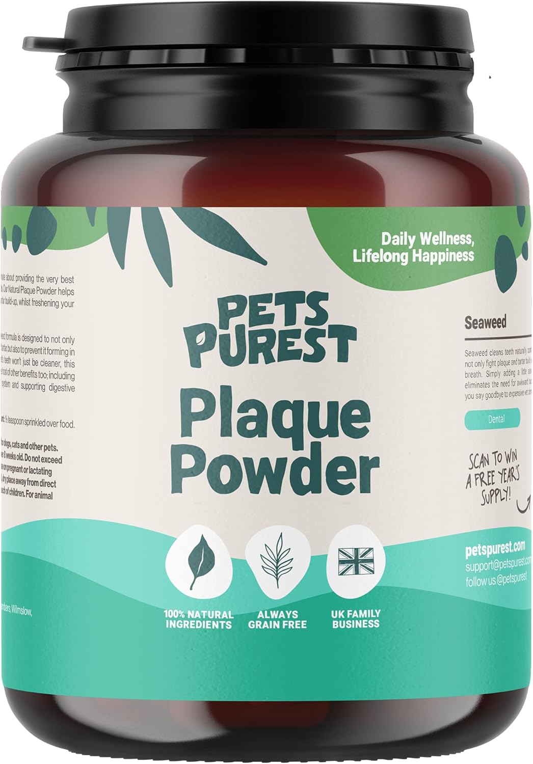 Pets Purest Plaque Off Powder – 185g Plaque Pro Tartar & Plaque Remover for Dogs, Cats & Pet. 100% Natural Bad Breath, Teeth & Gum Disease Oral Health Hygiene Dental Care Formula