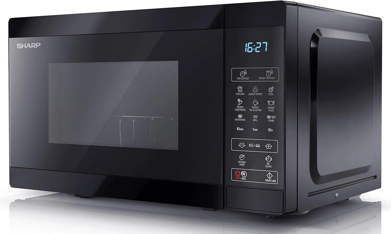 SHARP YC-MG02U-B Compact 20 Litre 800W Digital Microwave with 1000W Grill, 11 power levels, ECO Mode, defrost function, LED cavity light – Black