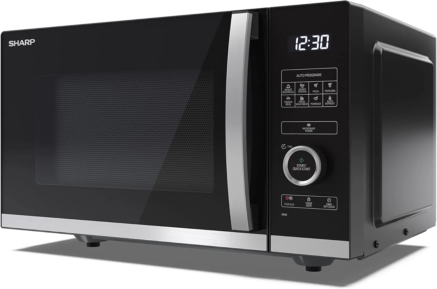 SHARP YC-QS254AU-B 25 Litre 900W Digital FLATBED Microwave, 10 power levels, ECO Mode, defrost function, LED cavity light – Black