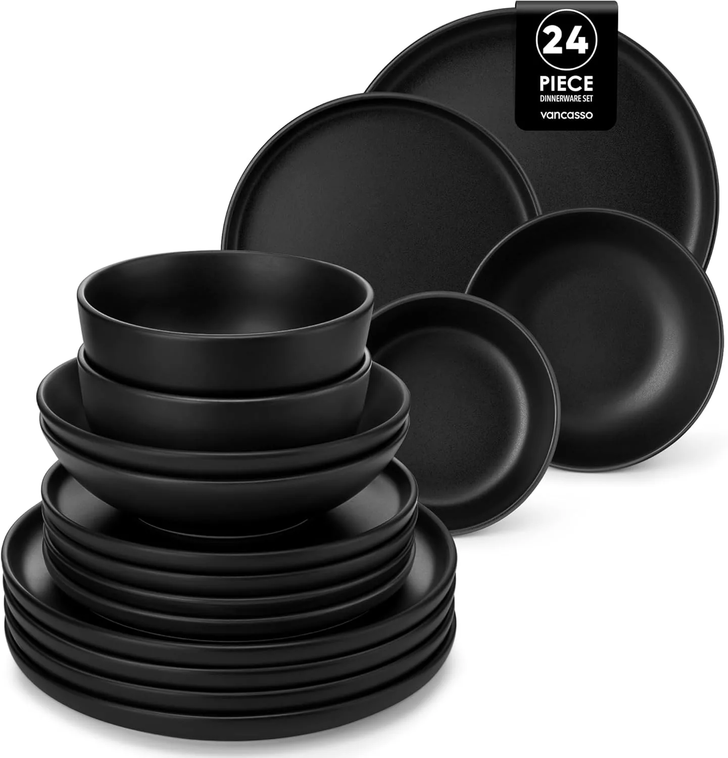 vancasso Navia Jardin Dinner Set, Stoneware Vintage Look Grey Dinnerware Tableware, 16 Pieces Dinner Service Set for 4, Including Dinner Plates, Dessert Plates, Cereal Bowls and Mugs